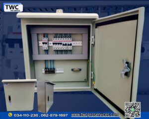 รายละเอียดงาน: ตู้แขวนภายนอกมีหลังคา ตู้คอนโทรลที่สร้างมาให้มีรูปแบบการติดตั้งสำหรับแขวน มีหลังคา สามารถกันน้ำฝน กันฝุ่นได้ มีขนาดตู้ที่ 50x55x15 cm. ประตู 1 ชั้น เป็นชนิดใช้งานแบบ OUTDOOR ทางtwc pro service ออกแบบและผลิตตามแบบที่ลูกค้าต้องการ วายริ่งอุปกรณ์ด้านในให้เหมาะสมกับการใช้งานของลูกค้า พร้อมจัดส่งและติดตั้งได้ทันเวลา